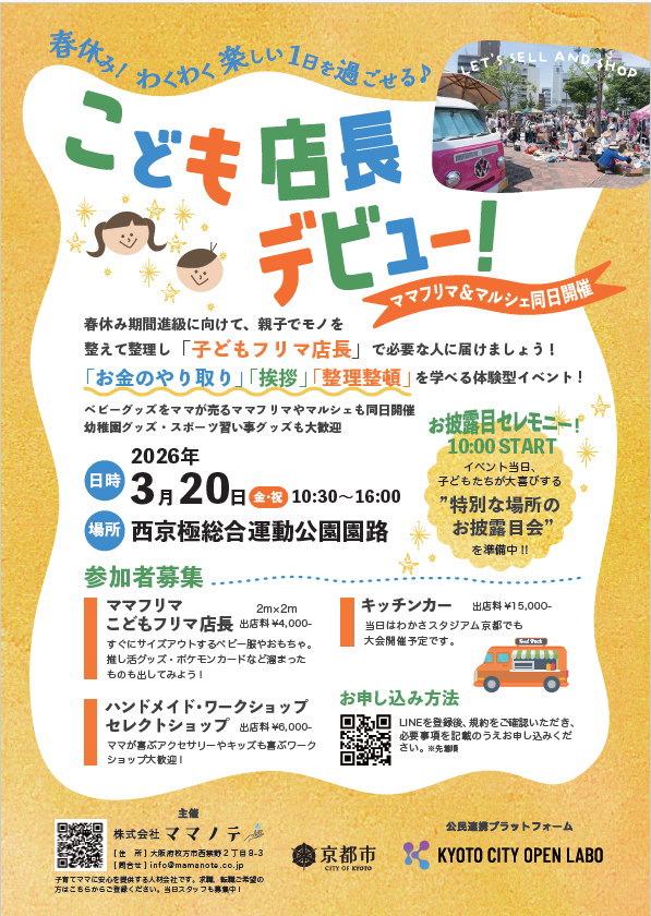 西京極総合運動公園内新設スペースオープニングセレモニー&親子マルシェ - 2026年3月20日(金・祝)